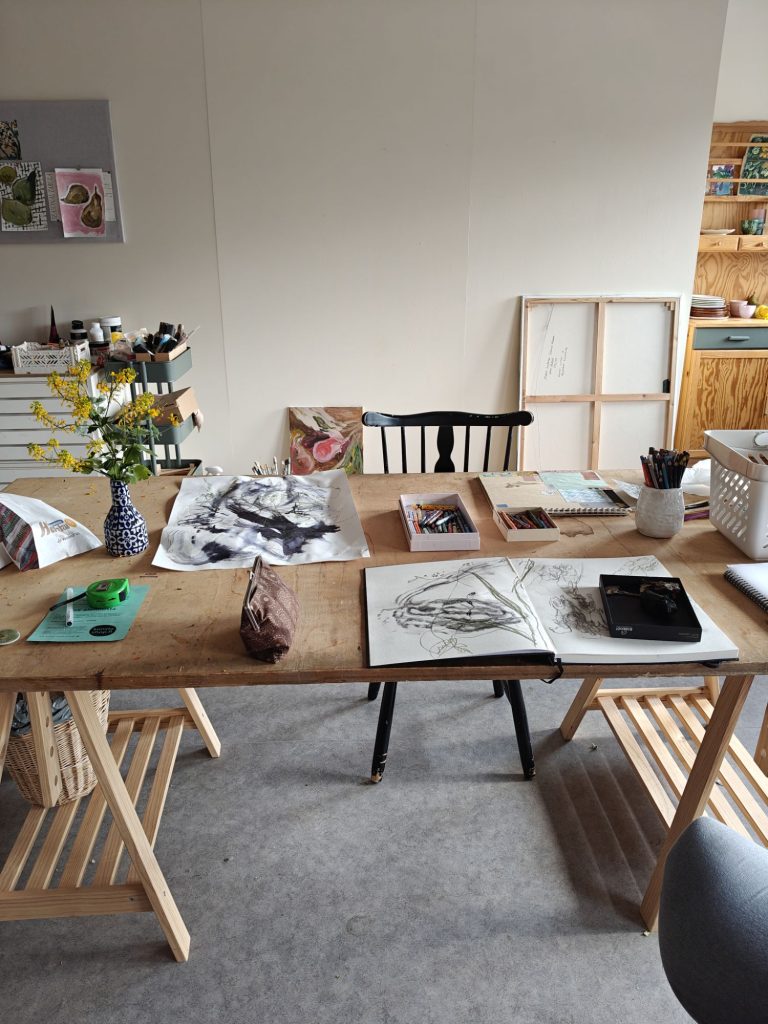 Olen tietoisesti pyrkinyt päästämään irti suorittamisesta ja kontrollista – asioista, jotka ovat olleet minulle niin tuttuja ja turvallisia. Se ei ole ollut helppoa, mutta tuntuu tärkeältä. Haluan antaa itselleni luvan kokeilla, tutkia ja tehdä jälkeä tavalla, joka tuntuu omalta. Jälkeä, joka syntyy minusta, ei ulkoisista odotuksista.
