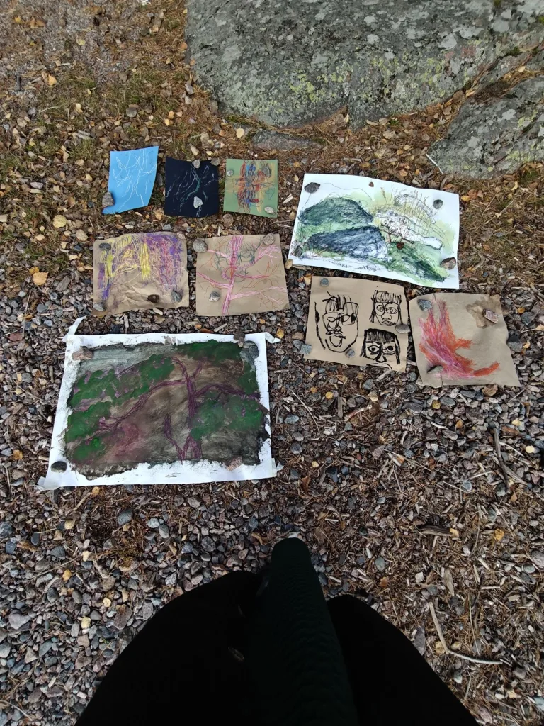 Toinen kurssikerta – luonto-croquis ja maadoittuminen, omakuvat