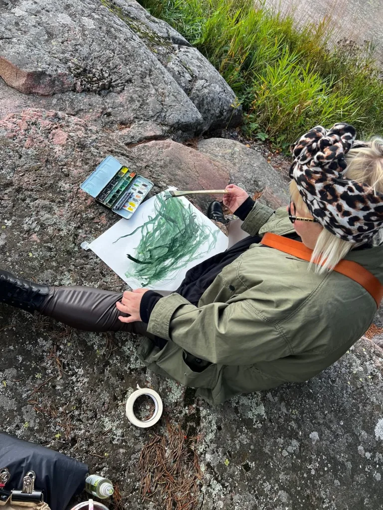 Jo näiden kahden kerran jälkeen koen, että kurssi avaa uudenlaisia ovia taiteelliseen työskentelyyni. Se kutsuu hidastamaan, kuuntelemaan ja antautumaan kokemukselle sen sijaan, että yrittäisin ohjata kaikkea järjellä. Kurssilla saan kosketuksen siihen, mistä oma ilmaisuni kumpuaa – kehollisuudesta, aisteista, luonnon rytmeistä ja sisäisestä herkkyydestä, joka on minulle sekä vahvuus että syvä työväline.