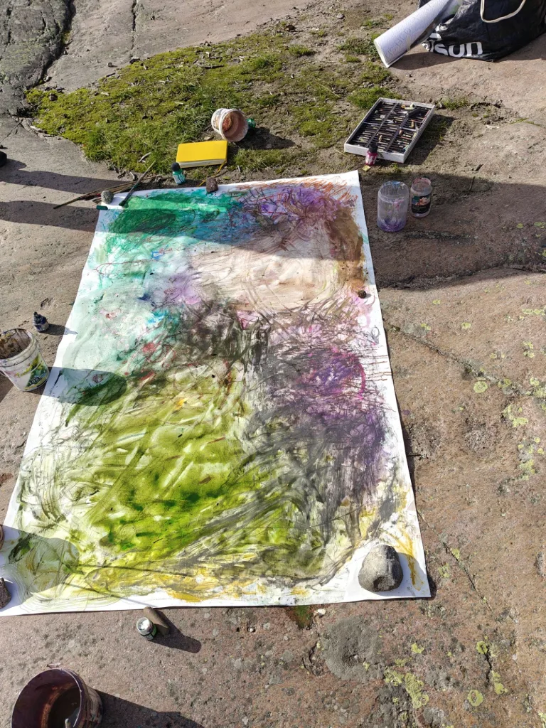 Toivon moniaistinen työskentelyn tuovan teoksiini uudenlaista kerroksellisuutta, spontaanisuutta ja rohkeutta. Maalaaminen ei ole vain visuaalista, vaan kokonaisvaltainen tapahtuma – vuoropuhelu minun ja maiseman, kehon ja värien välillä.