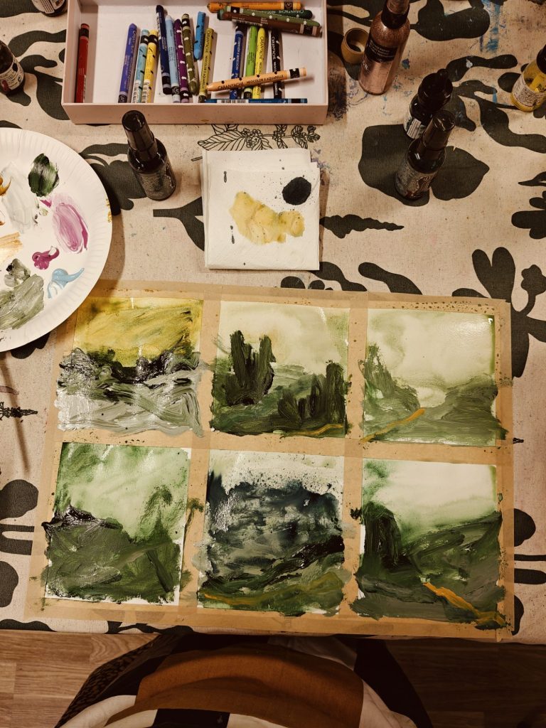 Minulle vihreä väri on tällä hetkellä erityisen tärkeä. Se rauhoittaa, maadoittaa ja muistuttaa elämän jatkuvuudesta. Kun maalaan kasveja, maisemia tai ihmisiä, en esitä poliittista kannanottoa, vaan teen tilaa hiljentymiselle, pysähtymiselle ja yhteyden tunteelle. Ja ehkä juuri se onkin mun tapa ottaa kantaa: hiljaa puolustaen toivoa, tunnetta ja yhteyttä.