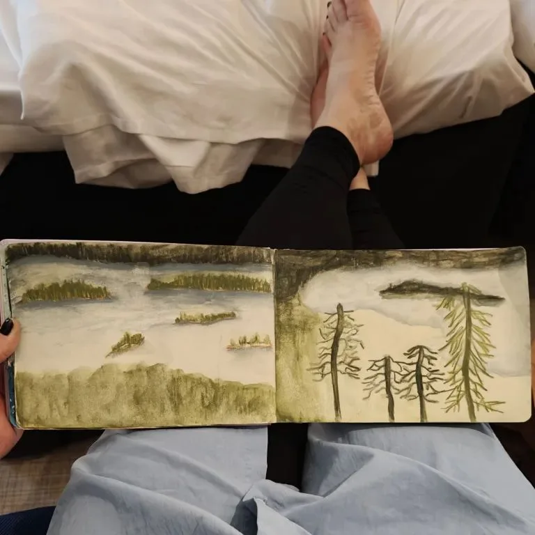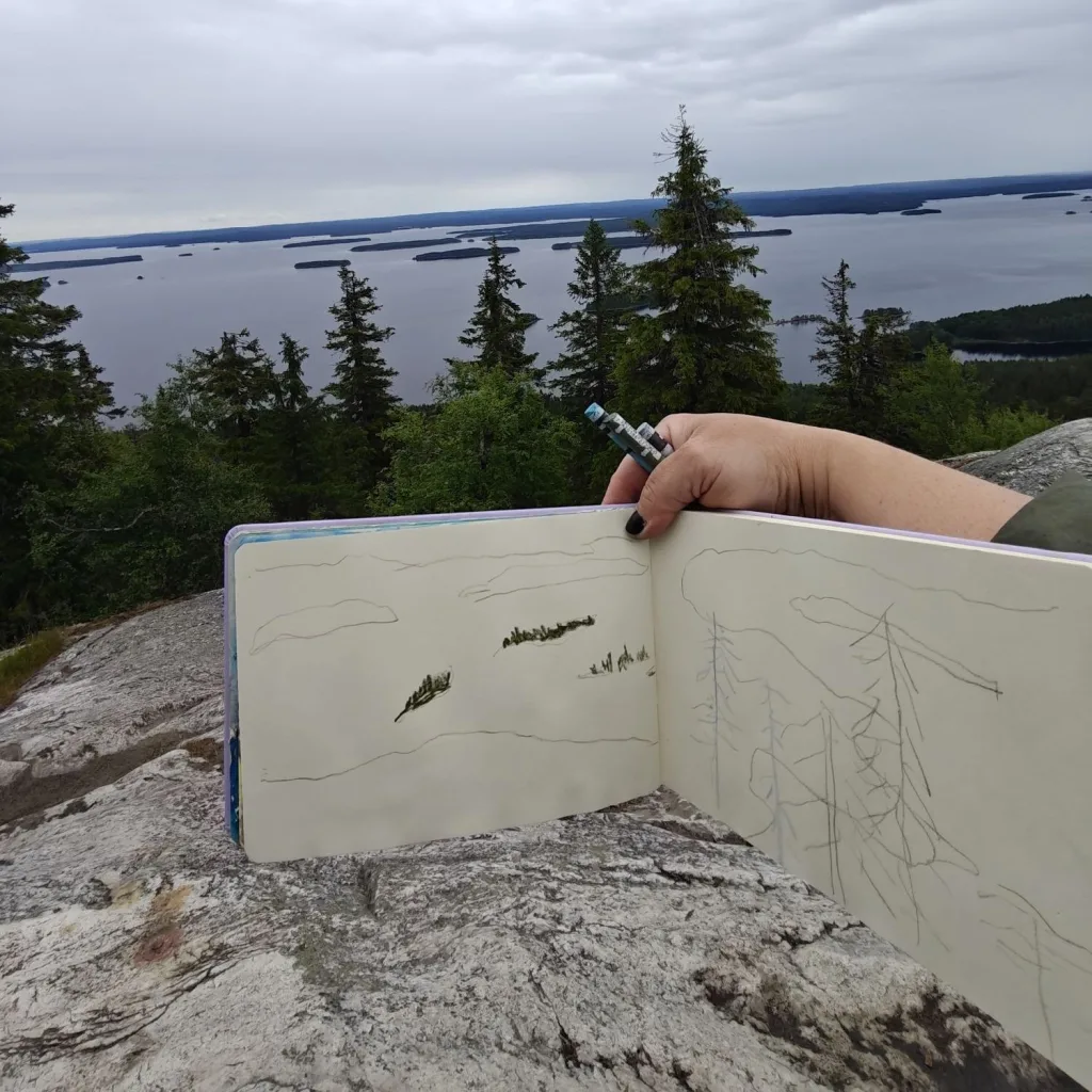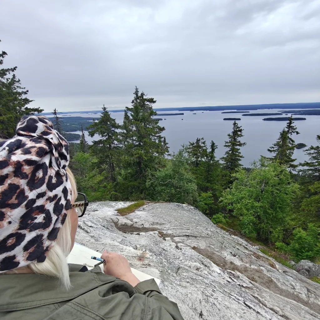En tiennyt, että tällainen kauneus voisi olla totta. Kolin maisemat eivät ainoastaan näkyneet, ne kävivät mun sydämeen ja verkkokalvoille tavalla, joka veti hiljaiseksi. Jo ensimmäisenä päivänä tunsin paikan voiman, rauhan ja hiljaisuuden.